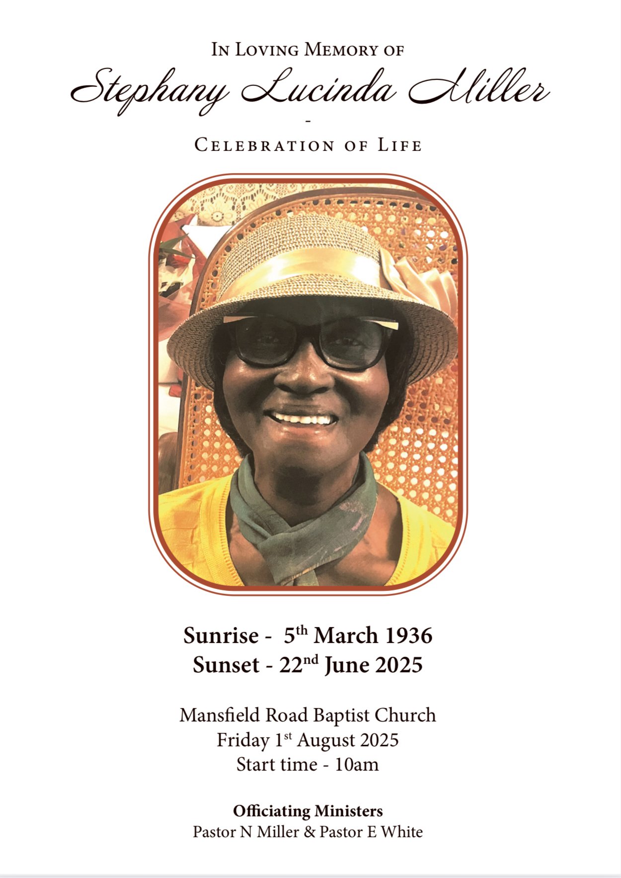 Stephany Lucinda MillerWatch live on Friday 1 August 2025 from 09:45am CLICK HERE TO WATCH PRIVATELY ON YOUTUBE Celebrating The Life of Stephany Miller Watch the live-stream above Click here to download the Order of Service